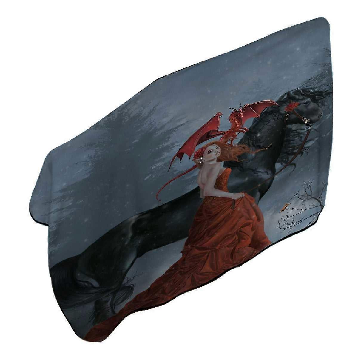 Fantasy Art Beautiful Autumn Dragon Princess with Her Horse Microfiber Beach Towel