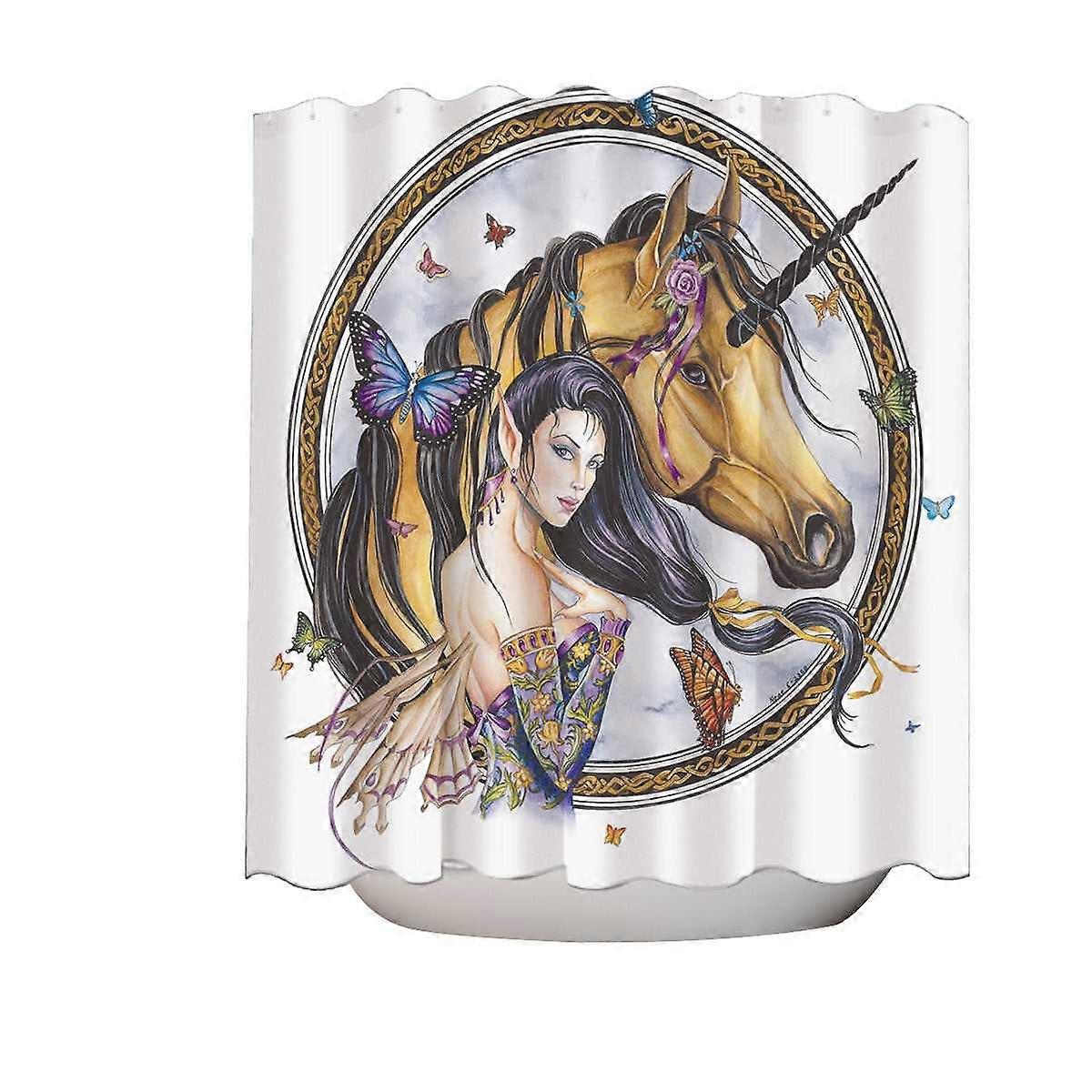 Fantasy Art Brown Unicorn and Fairy Princess Shower Curtain