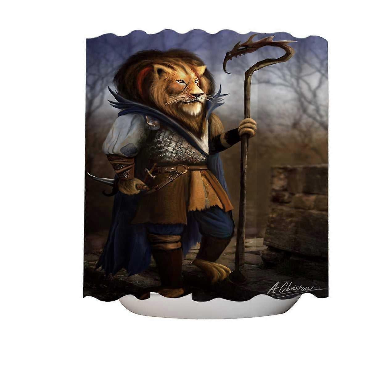 Fantasy Art Cool Lion Warrior Shower Curtain