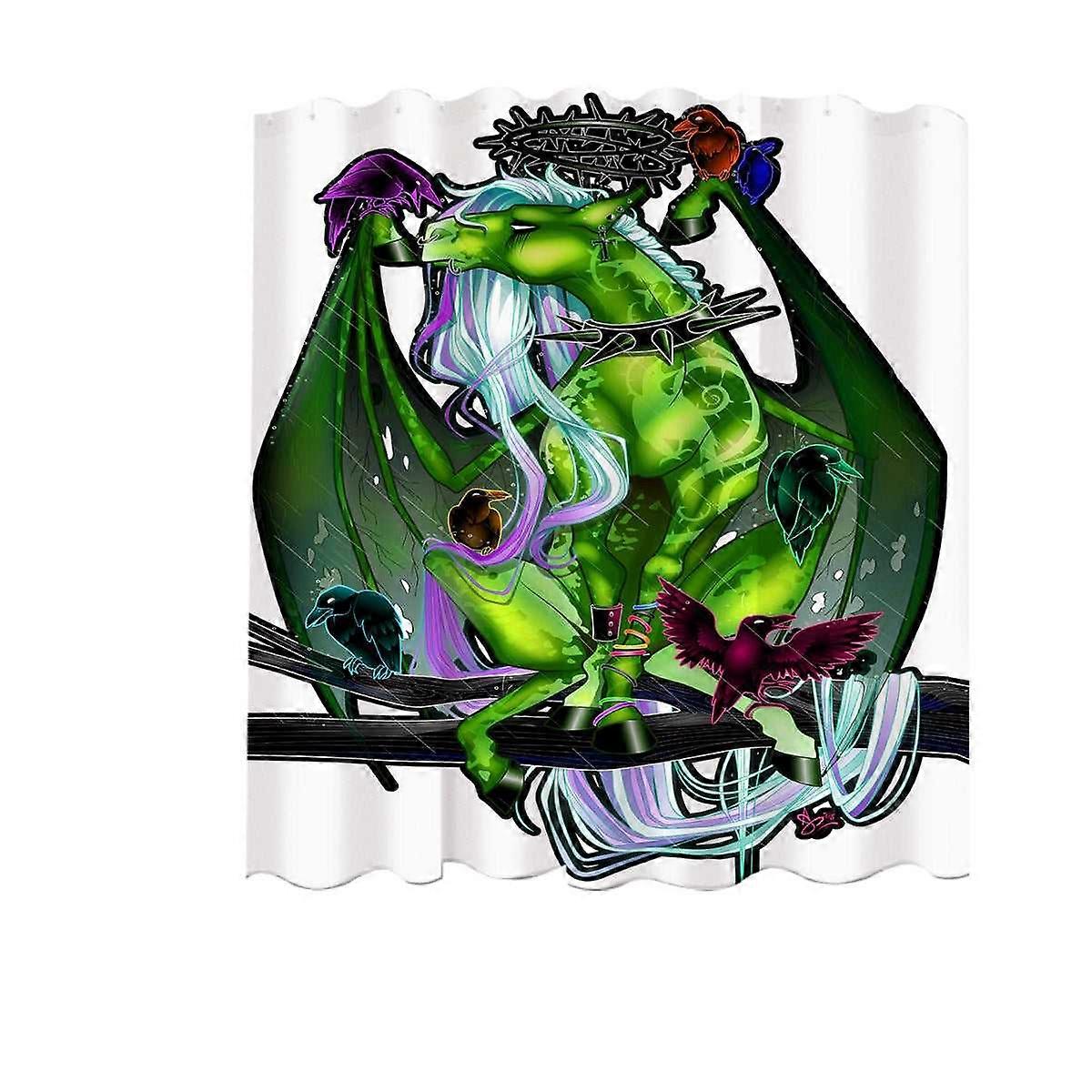 Fantasy Art Green Dragon and Crows Shower Curtain