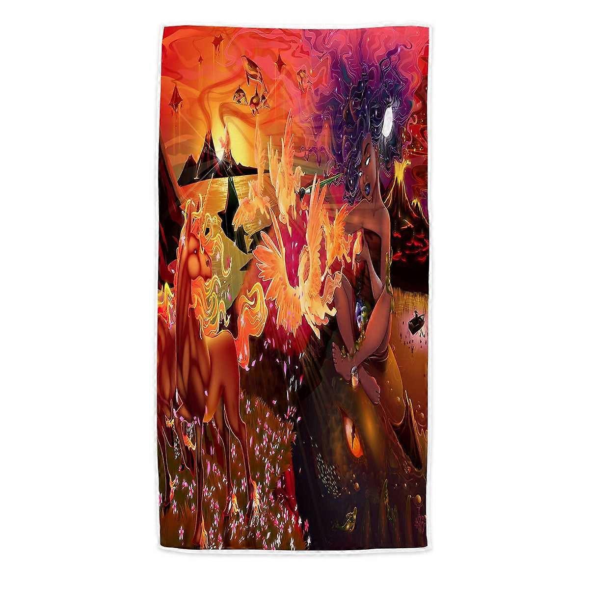Fantasy Art Unicorn Pegasus Volcanoes and Beautiful Artist Microfiber Beach Towel