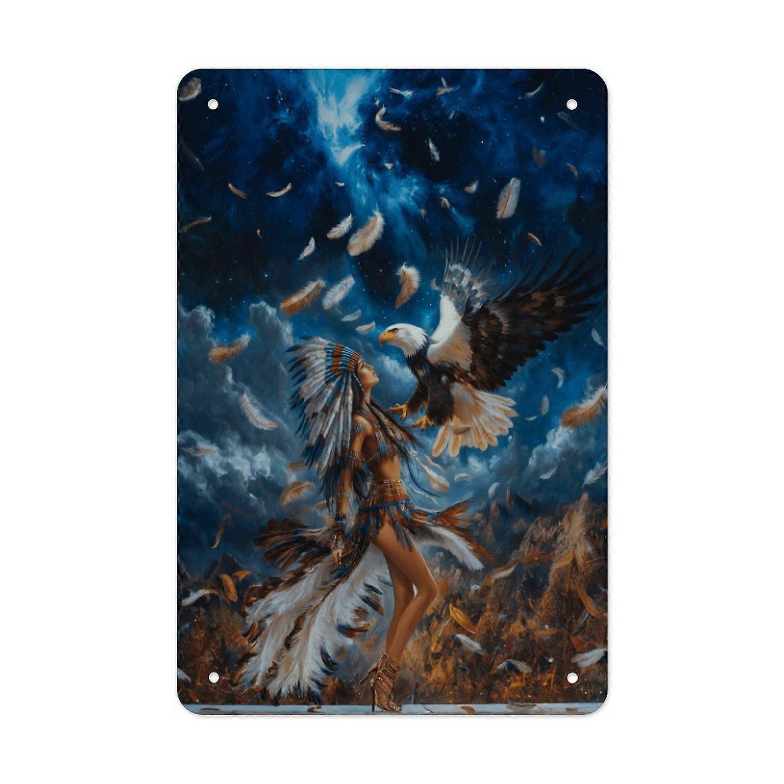 Fantasy Eagle Spirit Woman Metal Tin Sign Mythic Art Wall Decor