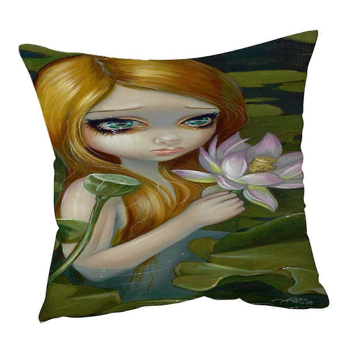 Fantasy Painting Mermaid Picking Lotus Blossoms Cushion Cover