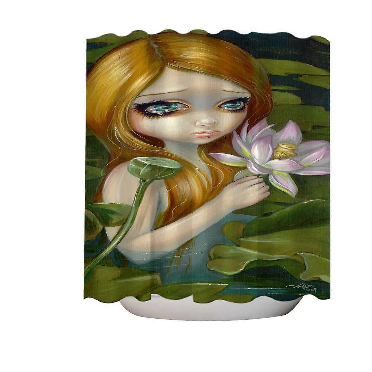 Fantasy Painting Mermaid Picking Lotus Blossoms Shower Curtain