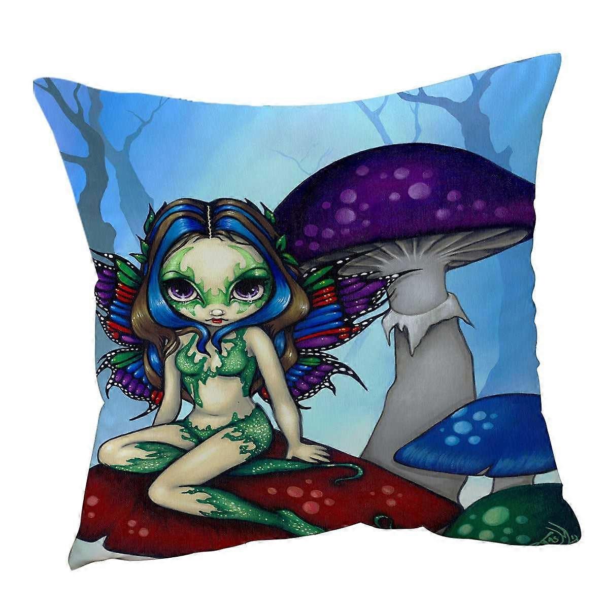 Fantasy World Masked Fairy on Mushrooms Cushion Cover