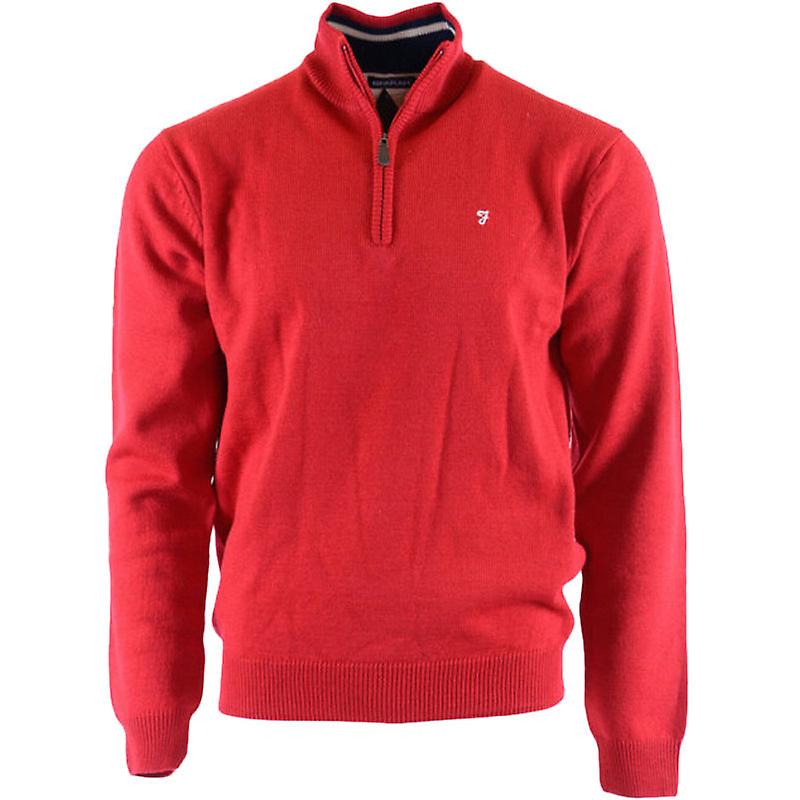 FARAH- The Brand was born in the 1920s but it was not until the 1970s, In the UK, That it reached the cult status it holds today. Born it the heart of Texas Farah originally produced work and combat pants, even earning the army navy ‘E’ award for WW2 contributions, Before being discovered across the pond. In the 1970s and 1980s the original Farah slack, made from hopsack canvas became an immediate hit with the youth of Britain. Today the Farah Label still holds the Heritage and vigour it stood for then. A whole new generation of Men throughout the world are drawn to the brand’s history and inspired to rediscover the distinct look for themselves.   FARAH Men’s Sweatshirt Regular Fit High Neck Zip Closer Embroidery Logo on Chest 50% Acrylic 50% Wool Made in China Size Guide: In Inches Size S M L  XL 2XL     Pit To Pit   21 21.5 23 23.5 24.5