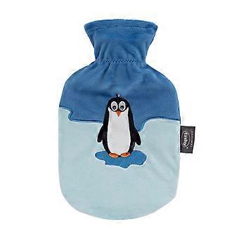 Fashy 0.8 Litre Hot Water Bottle with Pino Penguin Plush Cover - Blue