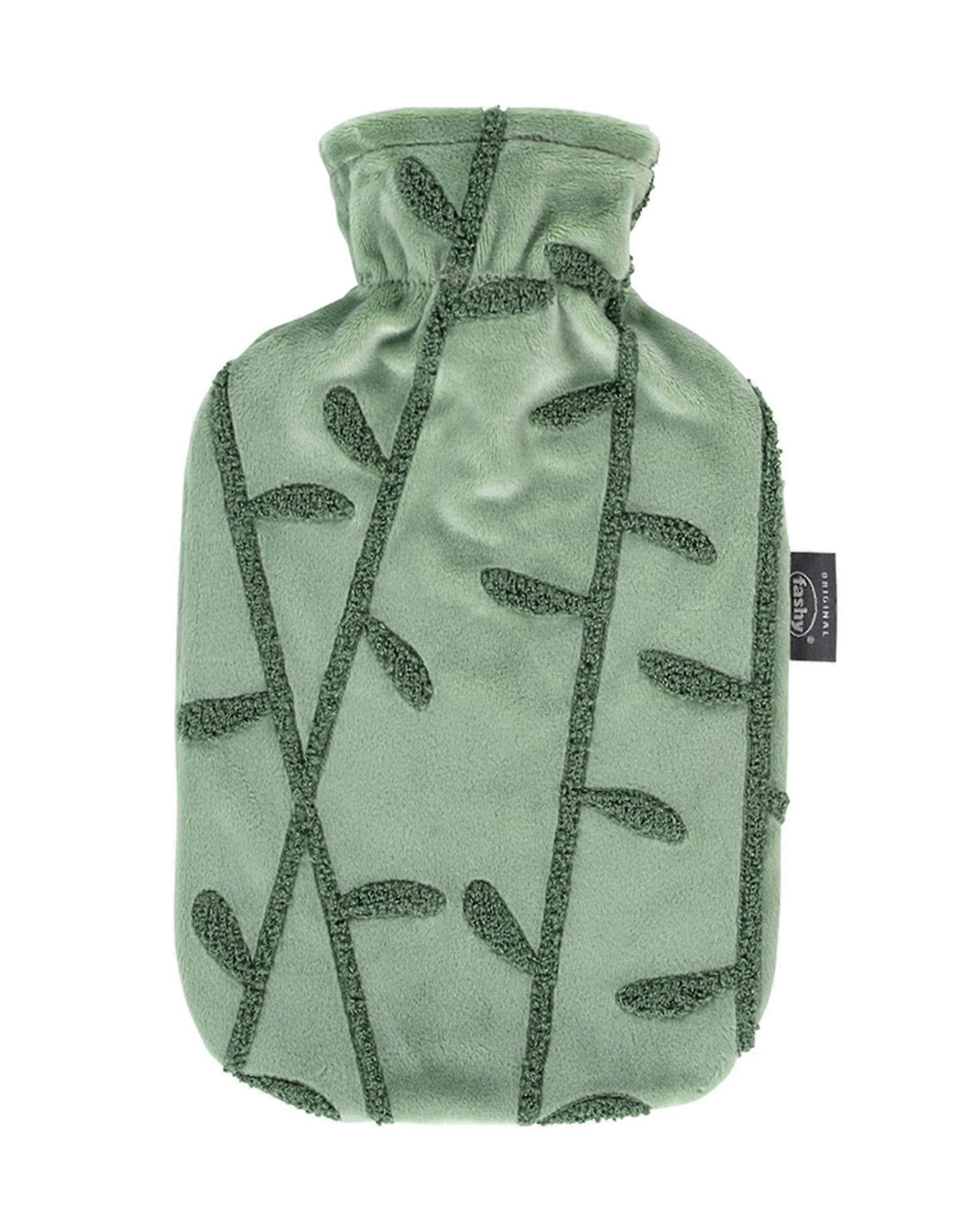 Fashy 2 Litre Hot Water Bottle with Leafy Plush Cover - Green