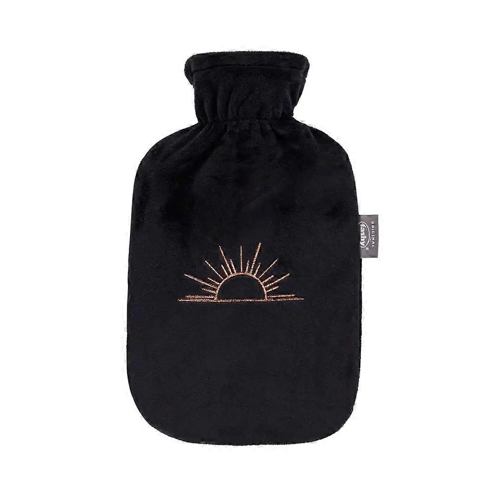 Fashy 2 Litre Hot Water Bottle with Sunrise Plush Cover - Black