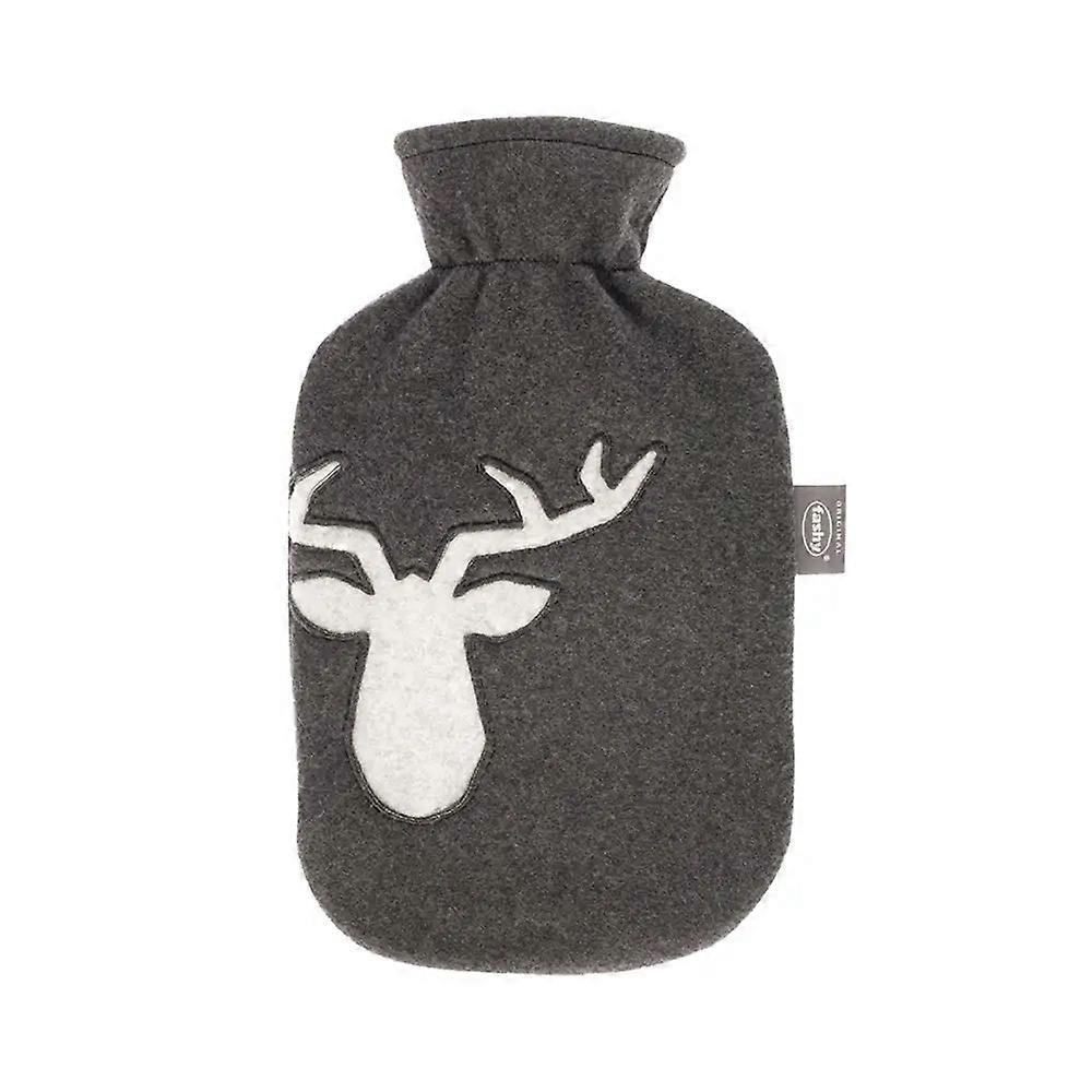 Fashy 2 Litre Hot Water Bottles with Reindeer Fleece Cover - Grey