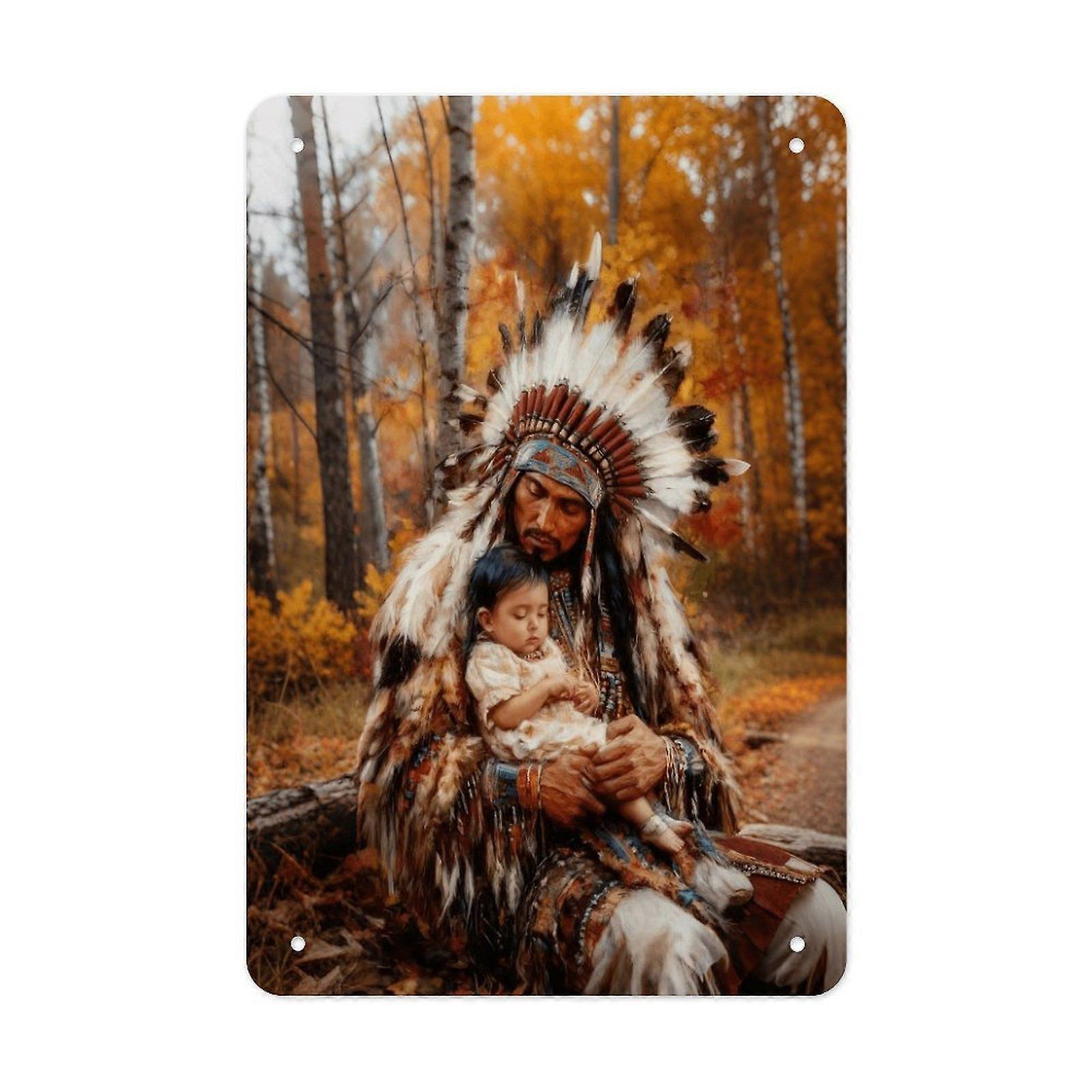 Father and Child Nature Art Metal Tin Sign, Warm Vintage Style Wall Decor, Emotional Family Iron Wall Art for Home Bedroom