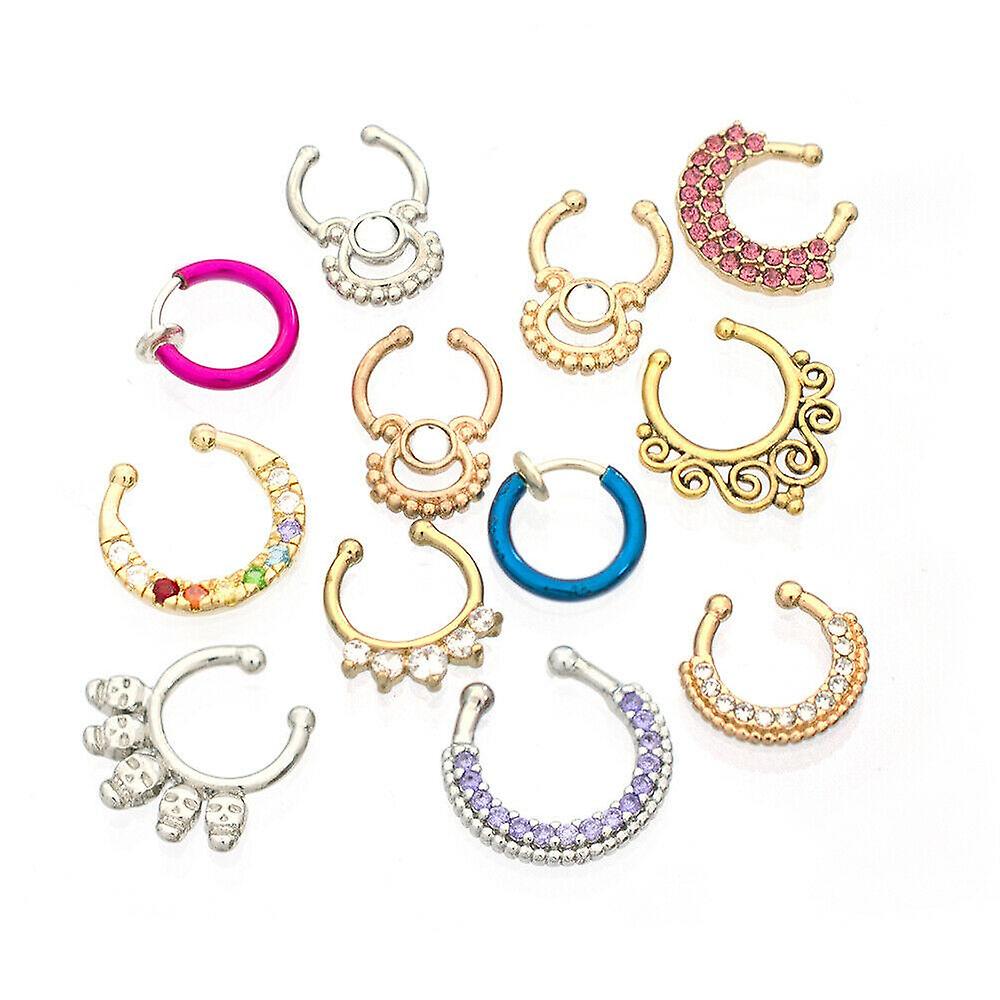 Faux Septum Jewelry Pack of 12 Randomly Picked Surgical SteelDescriptionFaux Septum Jewelry Pack of 12 Randomly Picked Surgical SteelPerfect to change your look without needing a piercingMultiple shapes and colors perfect to match every outfit