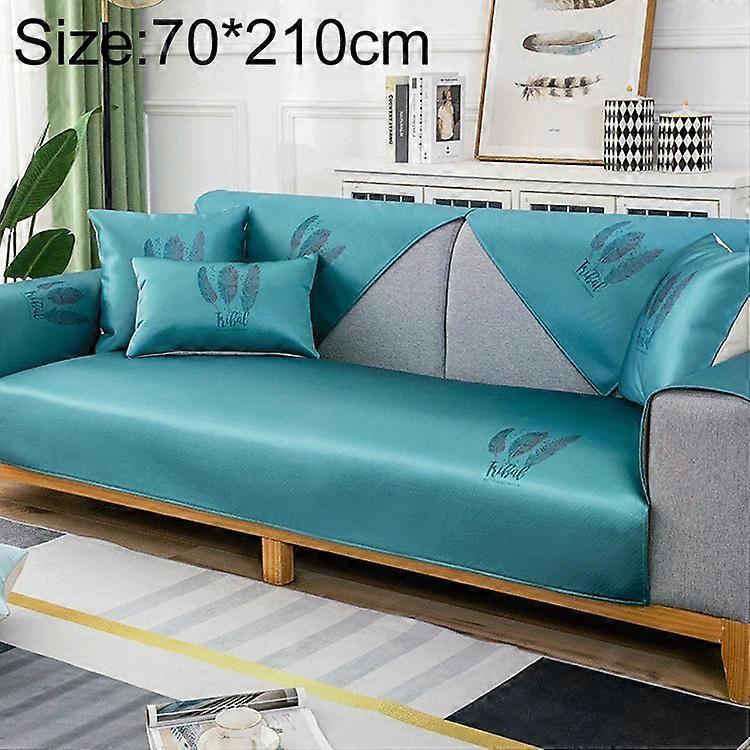 Feather Pattern Sofa Cover-Summer Ice Silk,Non-Slip,Full Coverage,70x210cm,Blue Blue