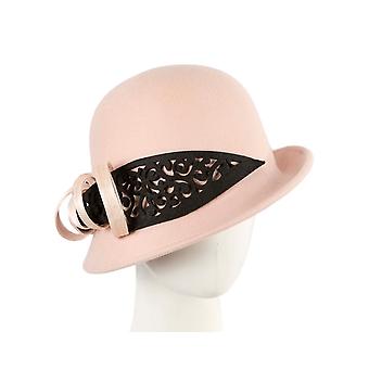 Felt beige & black cloche hat by Fillies Collection F692BEB