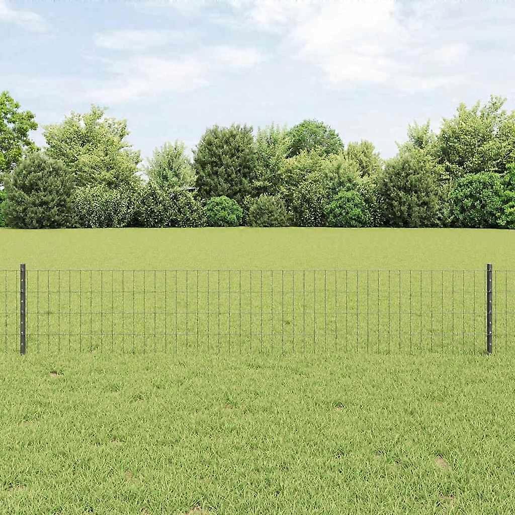 Zaun mit Pfosten Grau 0,4 x 10 m Stahl und PVC