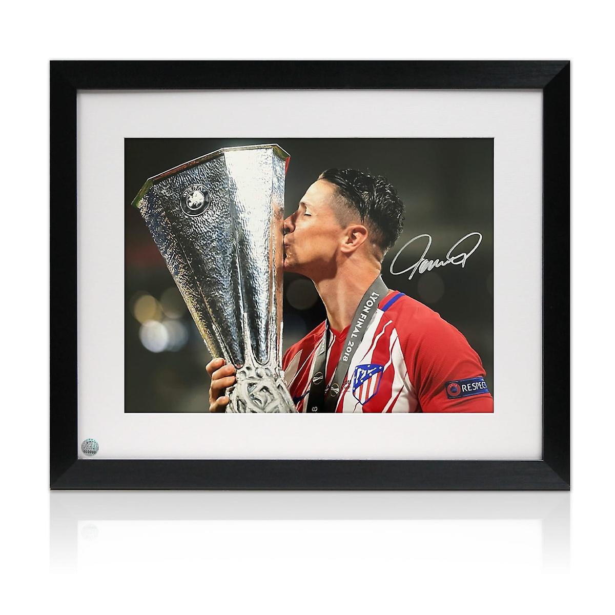 Fernando Torres Signed Atletico Madrid Football Photo: Europa Trophy. Framed