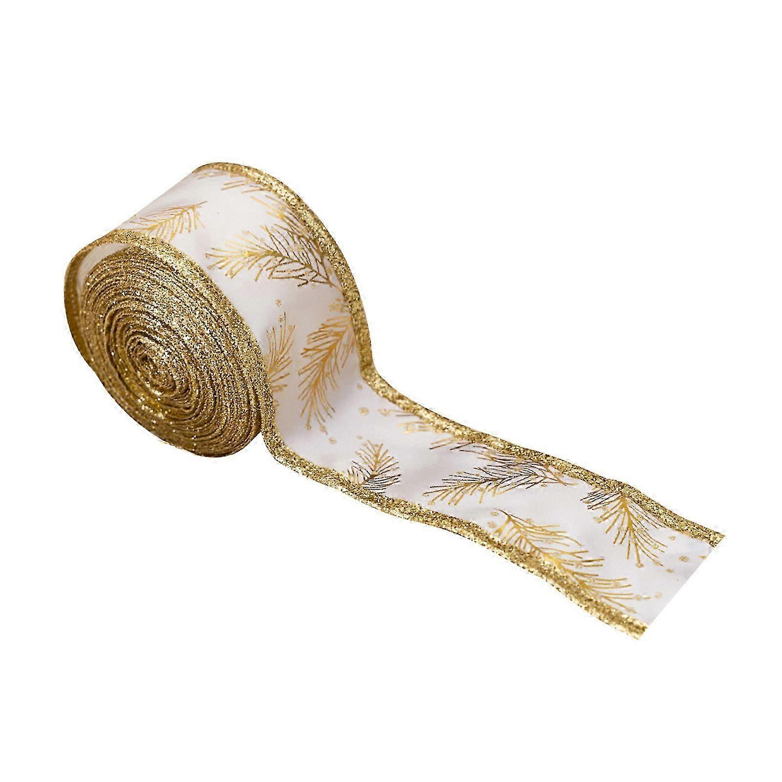 Festival Gold Leaf Ribbon for Christmas Gifts Packaging Seasonal Decors Festival Christmas Tree Trimming Ribbon White