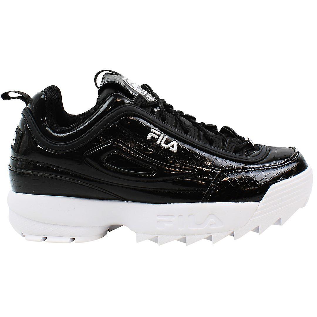 Fila Disruptor F Lace-Up Black Smooth Leather Kids Trainers 1011081 25Y