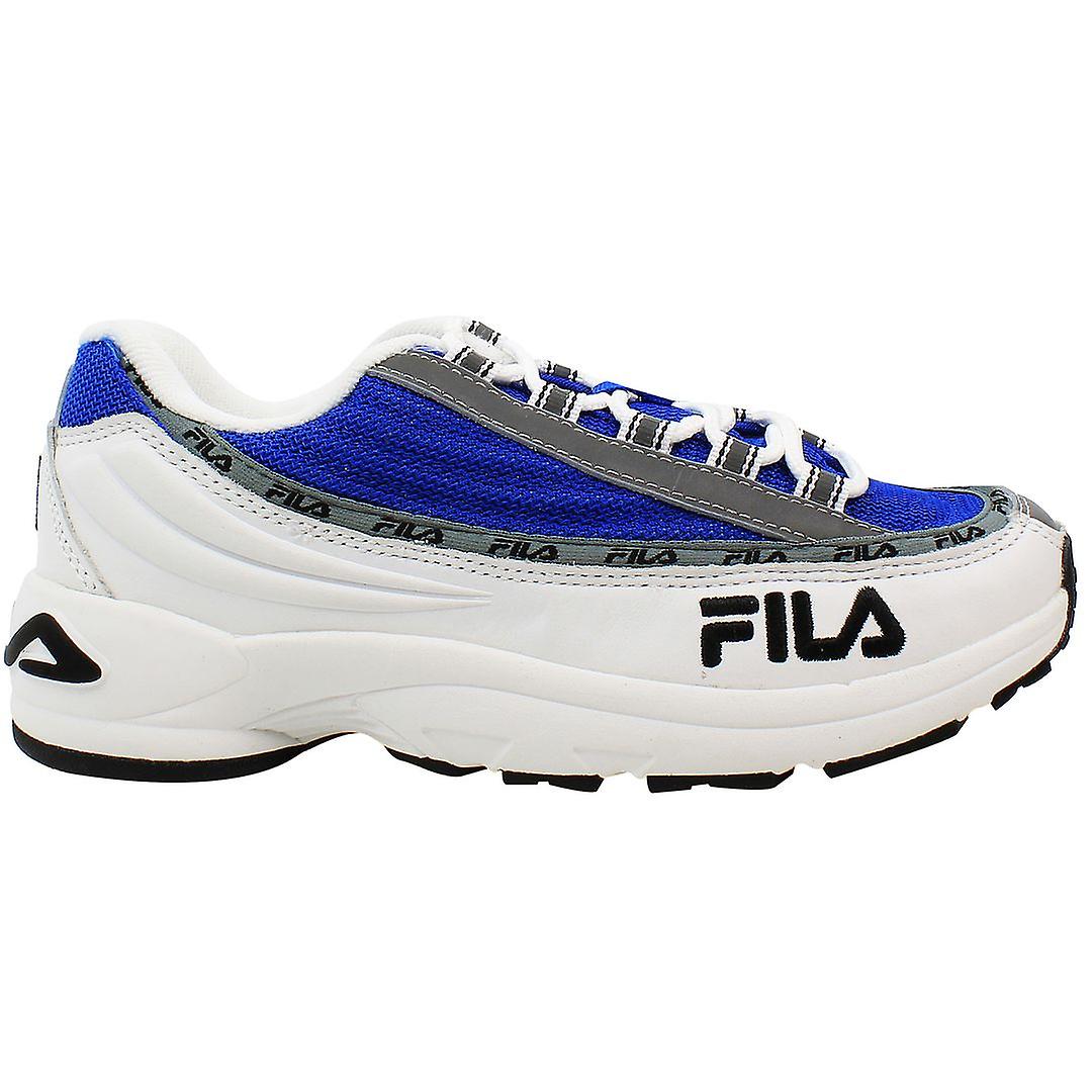 Fila DSTR97 White Blue Leather Textile Lace Up Womens Trainers 1010597 02B