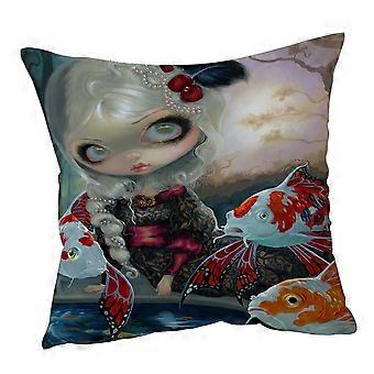 Fine Art Flying Fish Beautiful Girl and the Koi Pond Cushion Cover