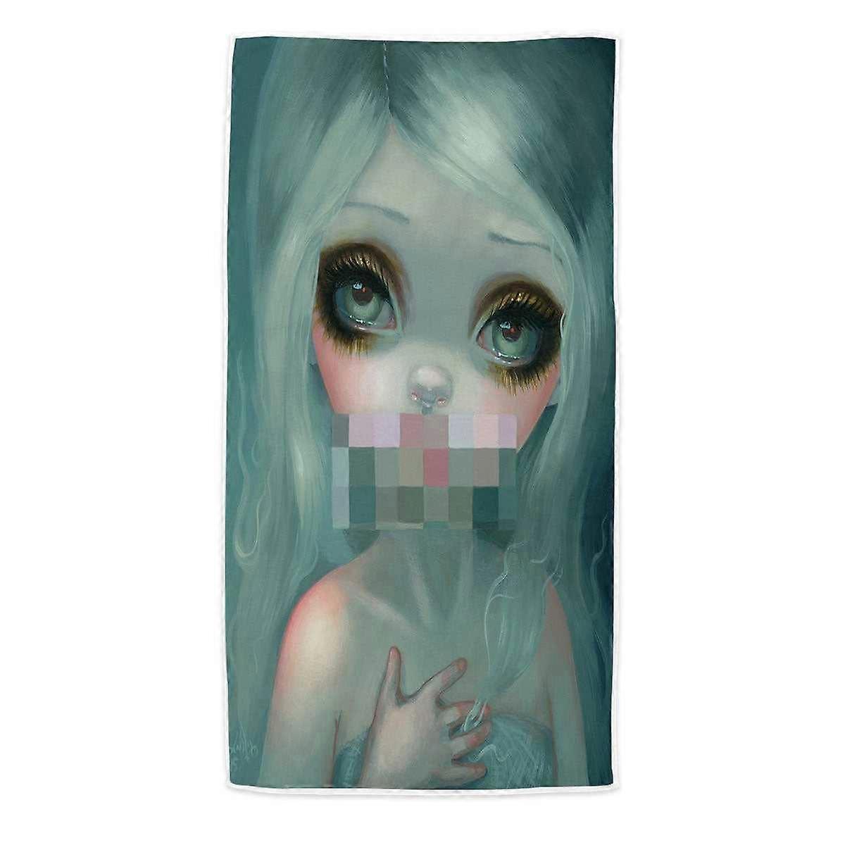 Fine Gothic Art Hand Painted Beautiful Girl Smile Microfiber Beach Towel