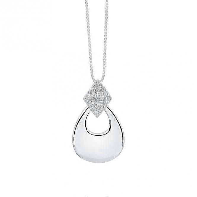 Fiorelli Silver Zirconia Teardrop Pendant P5414CDiscover the exquisite elegance of the Fiorelli Sterling Silver Zirconia Prism and Open Teardrop Pendant P5414C. This stunning piece of jewelry captures the enchanting play of light as it refracts through a beautifully designed prism. Crafted with precision, this pendant features a harmonious blend of contemporary aesthetics and timeless grace, making it a perfect addition to any jewelry collection.The pendant is meticulously made from recycled sterling silver, showcasing a commitment to sustainability without compromising on elegance. Its lustrous platinum plating adds an additional layer of sophistication, ensuring that you radiate style at any event. At the pinnacle of this captivating piece rests a prism-shaped charm adorned with sparkling cubic zirconia stones that shimmer brilliantly, reflecting light from every angle. The open teardrop underneath provides an eye-catching contrast, enhancing the pendant's modern design.This pendant is not just an accessory, but a statement piece that effortlessly elevates any outfit. Whether you're dressing up for a formal occasion or adding a touch of glamour to your everyday look, this pendant is versatile enough to suit all styles. Pair it with the matching earrings for a cohesive and refined appearance that will surely turn heads. Crafted from recycled sterling silver with lustrous platinum plating for luxury and sustainability. Features dazzling cubic zirconia stones, providing sparkling accents and reflections. This beautiful piece is crafted from recycled sterling silver with platinum plating, featuring a clear cubic zirconia. Complete with a chain that adjusts from 41-46cm, it weighs 3.09g and has dimensions of 16.13 x 25.12 x 2.96mm (WxHxD), offering a perfect combination of elegance and sustainable luxury.Fiorelli is a distinguished name in the British accessory market, known for its innovative designs that resonate with the modern woman. The Fiorelli Silver collection is celebrated for its balance of classic and contemporary styles, offering pieces that transition seamlessly from everyday wear to special occasions, including bridal functions. Each item is thoughtfully packaged in elegant Fiorelli branding, complete with a gift bag and box, making it an ideal gift for a loved one.When you choose the Fiorelli Sterling Silver Zirconia Pendant, you can also enjoy peace of mind with the brand's comprehensive warranty, which covers any manufacturing defects for a full year from the date of purchase. Embrace luxury, sustainability, and exceptional craftsmanship with this remarkable pendant.