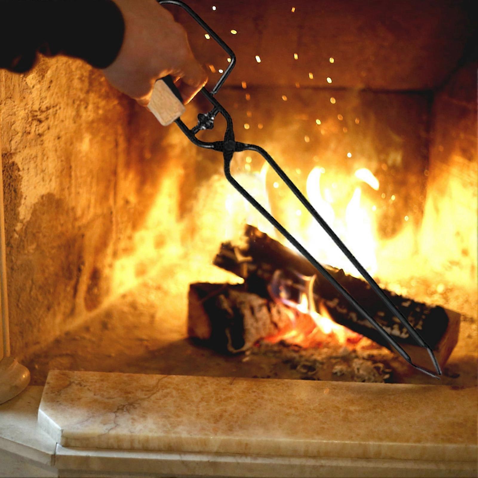 Firewood Tongs Indoor and Outdoor Fireplace Fire Box Tongs Heavy Duty Cast Iron Log Grabber Fireplace Tools Fire Box Campfire