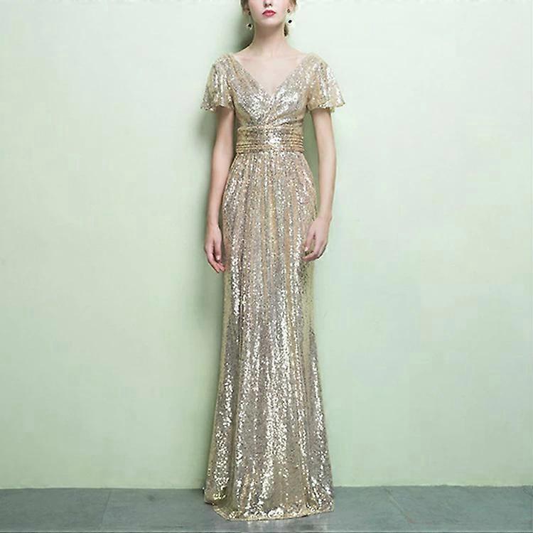 Fishtail Evening Dress-Long Elegant Banquet Gown in Champagne,XXL Champagne,XXL