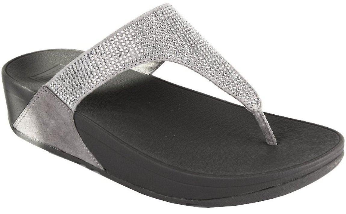 Fitflop Slinky Rokkit Silver Black Womens Leather Sandals Flip Flops