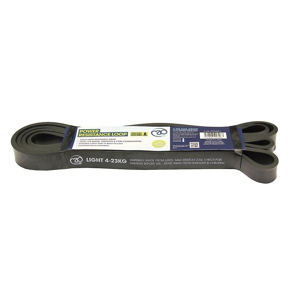 Fitness Mad Power Resistance Loop Muscle Core Rehab Training Band - Light Fitness-Mad's Power Resistance Loop band's enable you to workout almost anywhere. The specially designed, heavy-duty resistance bands are perfect for strengthening muscles and core conditioning as well as rehabilitation exercises. Available in five different strengths. Product details: Dimensions - 104cm diameter 4 - 23Kg  Max Stretch - 2.5x Material - Latex rubber Warning - This product is made of latex. Do not use if you suffer from a latex allergy. Model: FPOWERLL