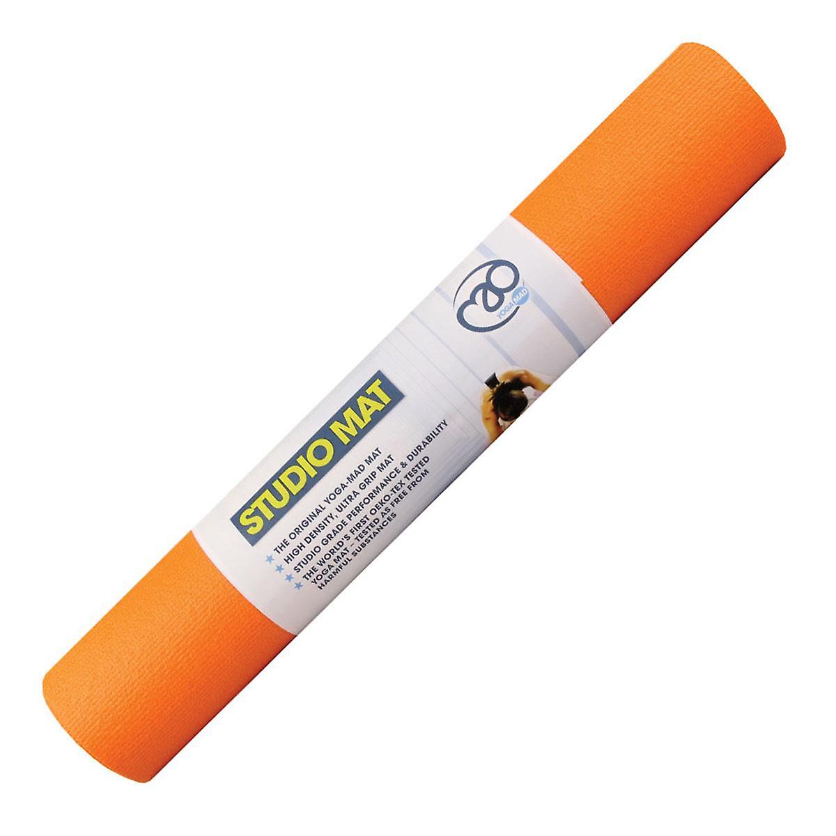 No matter where you're working out, the Fitness Mad Studio Pro Yoga Mat in orange will be your perfect companion. Coming from the longest running series of Yoga-Mad mats, it has been tried and tested to perfection. The Studio Pro mat was the first to be tested against harmful substances for skin contact which is now Oeko-Tex Level 1 certified. The studio mat is a high density mat which offers great cushioning, slip-resistance and durability. The mat is phthalate free. Features Dimensions: 183cm x 60cm x 4.5mm Weight: 1.5Kg Material: Phthalate Free PVC Free from: Phthalates. Tested as free of harmful substances to Oeko Tex Level 1 To optimise slip resistance, please wipe with a damp cloth and towel dry before first use.  Care instructions - The studio mat can be wiped clean or it can be machine washed at 40 degrees, using a small amount of soap. DO NOT put your mat through a spin cycle or spin dry as this may damage the mat. Dry flat or roll up in a towel to speed up drying time.