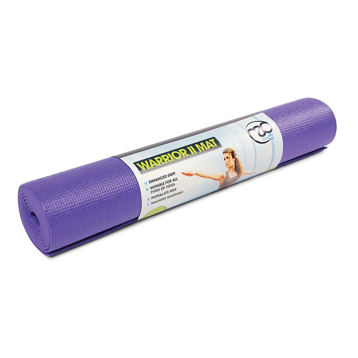 The Fitness Mad Warrior Yoga Mat II in purple is the latest version of the best-selling Warrior yoga mat. The Warrior II offers; good cushioning, fantastic value for money and improved grip. 4mm is the most popular thickness of yoga mat for regular yoga practice. The mat is 183cm (6ft) long, ensuring you'll stay on the mat. Features Dimensions: 183cm x 61cm x 4mm Weight: 1.1kg Material: Pthalate free PVC Free from: Phthalate & Latex Free PVC Tested as free of harmful substances to Oeko Tex Standard 100 Class II Purple To optimise slip resistance, please wipe with a damp cloth and towel dry before first use.  Care Instructions - Can be wiped clean or can be machine washed at 40°C using a small amount of soap. DO NOT put this mat through a spin cycle or spin dry as this may damage the mat. Dry flat or roll up in a towel to speed drying time.