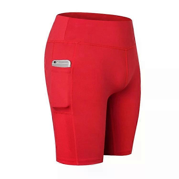 Fitness Running Tights-Quick Dry,Sweat Wicking,5-Point Belt Pocket,Red Red,L