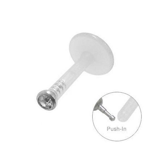 Flexible threadless push-in labret monroe lip jewelry with clear gem