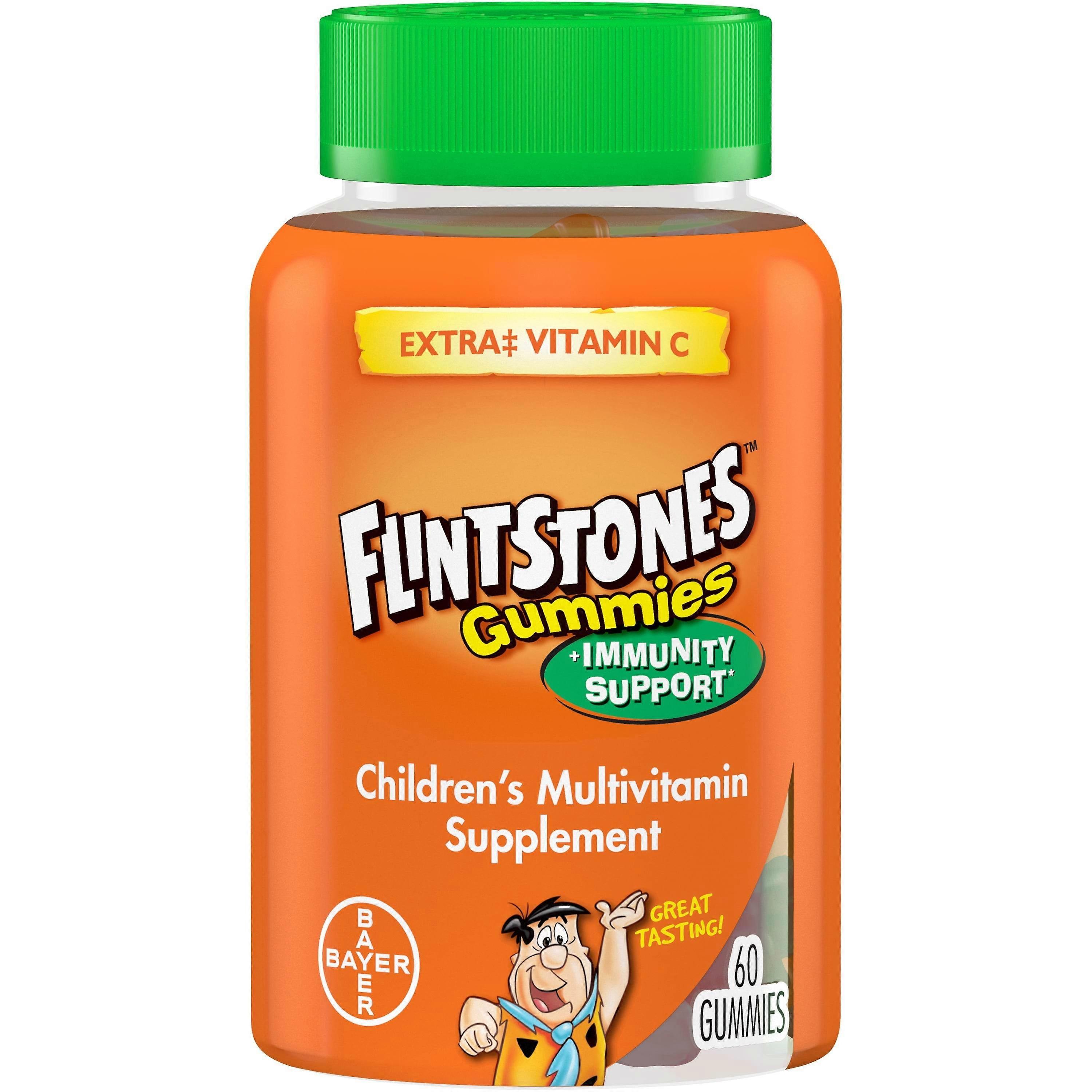 Product detailsTrusted by parents and pediatricians alike, Flintstones multivitamins have been providing kids nutritional support as they grow up healthy and strong for more than 50 years. Flintstones Multivitamin Gummies with Immunity Support* offer a wide range of nutrients in easy-to-chew, fruit-flavored gummies that kids love. These daily multivitamins provide vitamins and minerals that growing bodies may need. Flintstones Immunity Gummies are specially formulated with Vitamins A, E, Zinc and Vitamin C to support kids' immune health.* Also contains B Vitamins to help convert food to fuel and supports eye health with key nutrients.* *This statement has not been evaluated by the Food and Drug Administration. This product is not intended to diagnose, treat, cure, or prevent any disease. The Supplement Facts labeling information contained within this website should be regarded as the most up to date and may differ from product labeling that you have purchased. Please consult your product package for information, including allergens, specific to the product you have purchased. Flintstones Gummies Multivitamins with Immunity Support* provide toddlers, children and teens with nutritional and immunity support in easy to chew, fruit flavored gummy vitamins.* Free of synthetic artificial colors, artificial flavors, artificial sweeteners, egg allergen, fish/crustacean shellfish allergens, high fructose corn syrup, dairy (milk) allergens, soy allergen, GMOs Directions: Under adult supervision, product should be fully chewed. Children 2 & 3 years of age: Fully chew one gummy daily. Adults and children 4 years of age and older: Fully chew two gummies daily. Contains Key Nutrients: Vitamin A, Vitamin B6, Vitamin B12, Vitamin C, Vitamin D, Vitamin E, Folate, Biotin, Iodine, Pantothenic Acid, Zinc Nutritional support you can trust to help kids thrive. Flintstones Vitamins are the