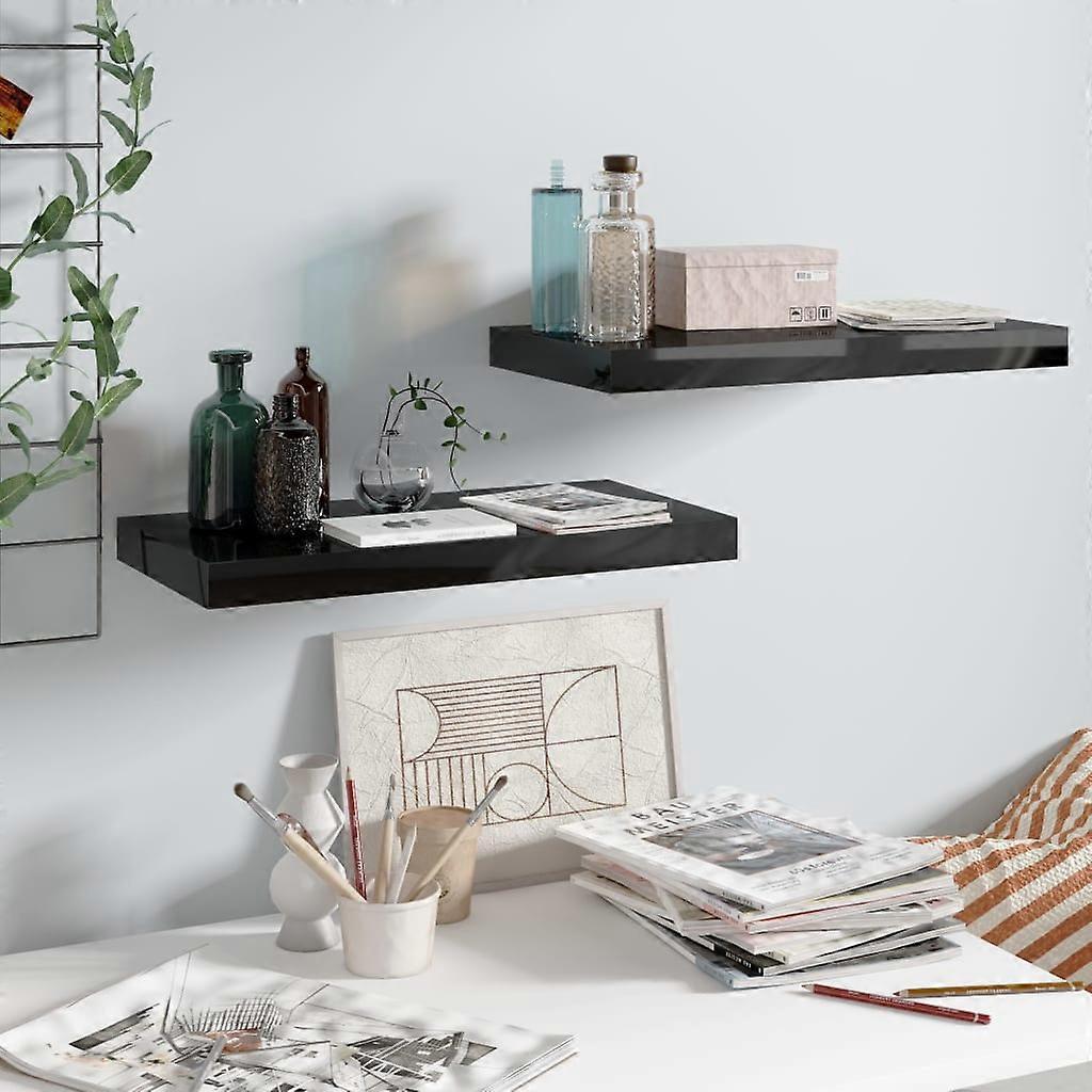 Schweberegale 2 Stk. Hochglanz-Schwarz 50x23x3,8 cm MDF