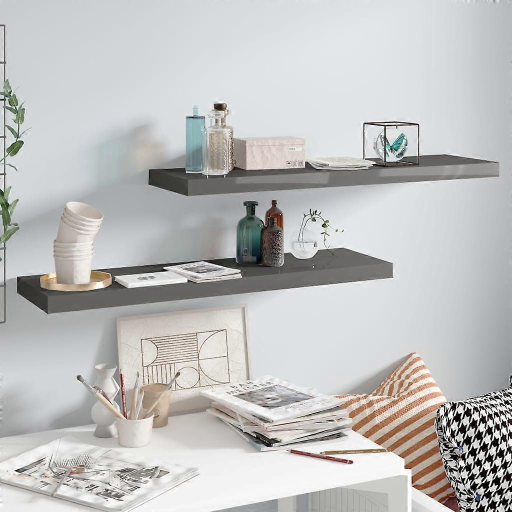 Schweberegale 2 Stk. Hochglanz-Grau 90x23,5x3,8 cm MDF