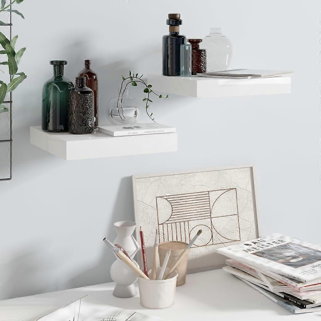 Schweberegale 2 Stk. Hochglanz-Weiß 23x23,5x3,8 cm MDF