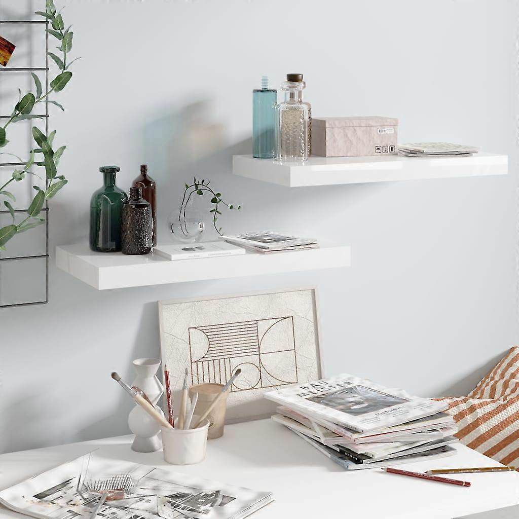 Schweberegale 2 Stk. Hochglanz-Weiß 50x23x3,8 cm MDF