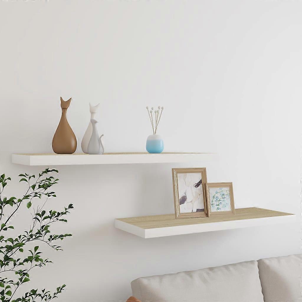 Schweberegale 2 Stk. Eichen-Optik und Weiß 80x23,5x3,8 cm MDF