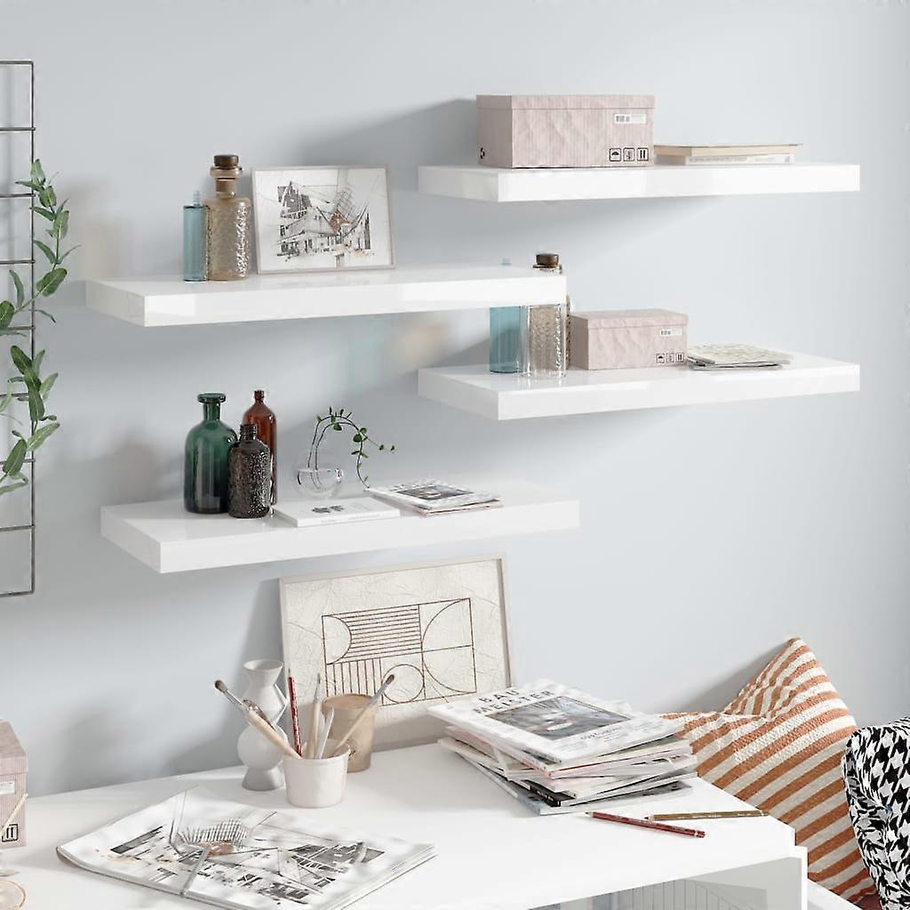 Schweberegale 4 Stk. Hochglanz-Weiß 60x23,5x3,8 cm MDF