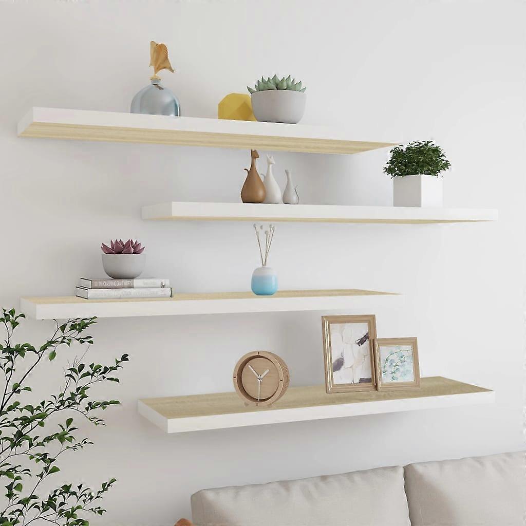 Schweberegale 4 Stk. Eichen-Optik und Weiß 120x23,5x3,8 cm MDF