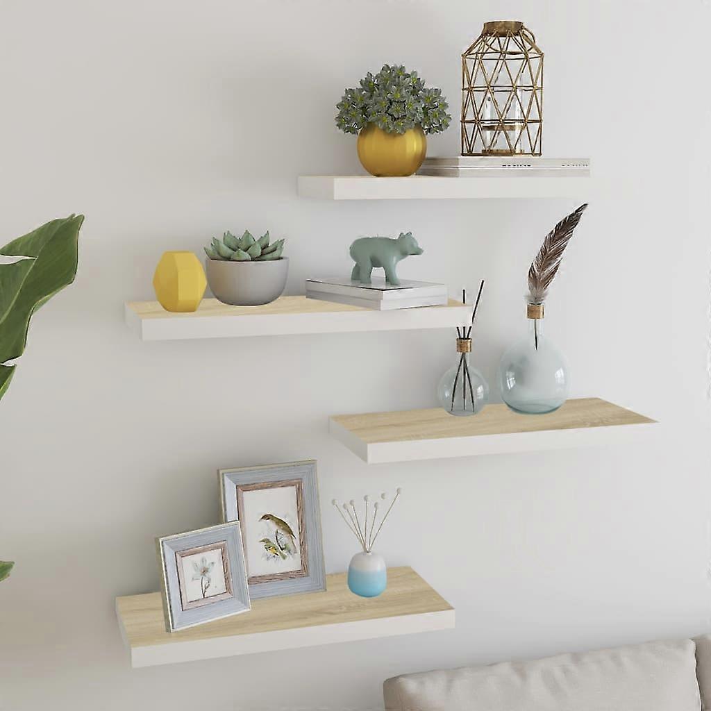 Schweberegale 4 Stk. Eichen-Optik und Weiß 60x23,5x3,8 cm MDF