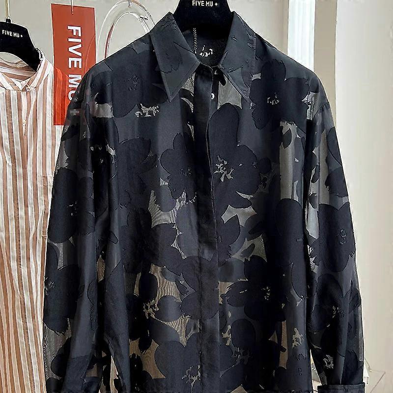 Floral Women's Long Sleeve Sheer Summer Blouse Casual Korean Fashion Top