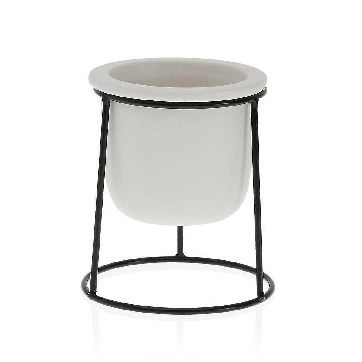 Blumentopf Versa Weiß Metall aus Keramik Kunststoff karriert Minimalistisch 10,5 x 14,5 x 10,5 cm
