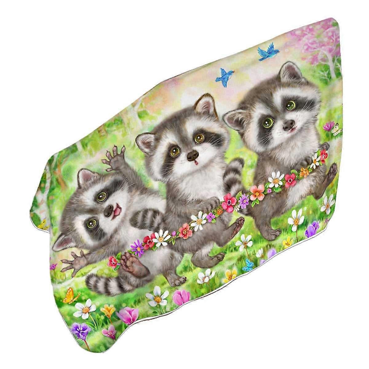 Flowers and Three Raccoons in the Forest Microfiber Beach Towel