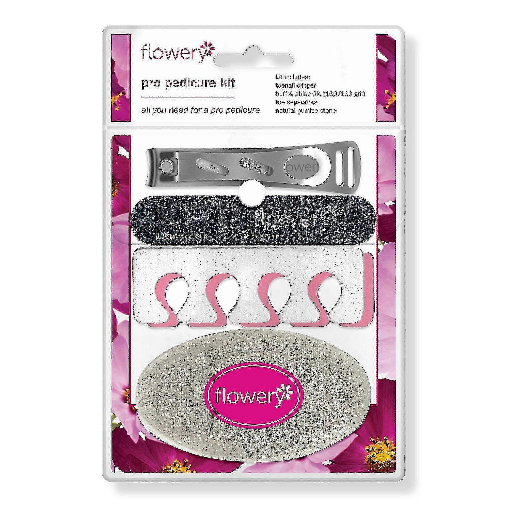 Flowery pedicure kit has all the necessary tools needed to get a professional pedi look