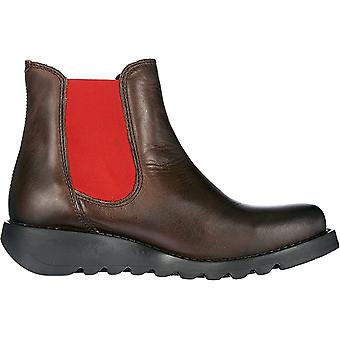 Fly london Salv Dark Brown Red Elastic Leather Womens Ankle Boots-41