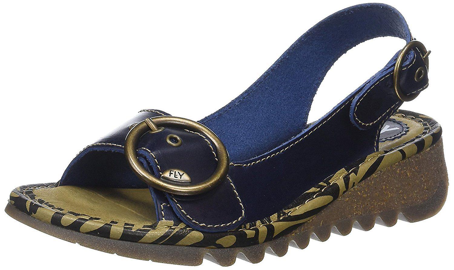 Fly London Tram Blue Womens Leather Slingback Sandals