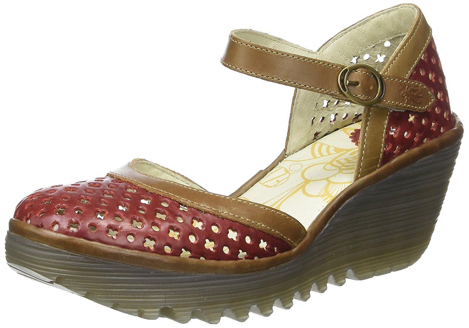 Fly London Yadu732Fly Red Camel Womens Leather Wedge Sandals